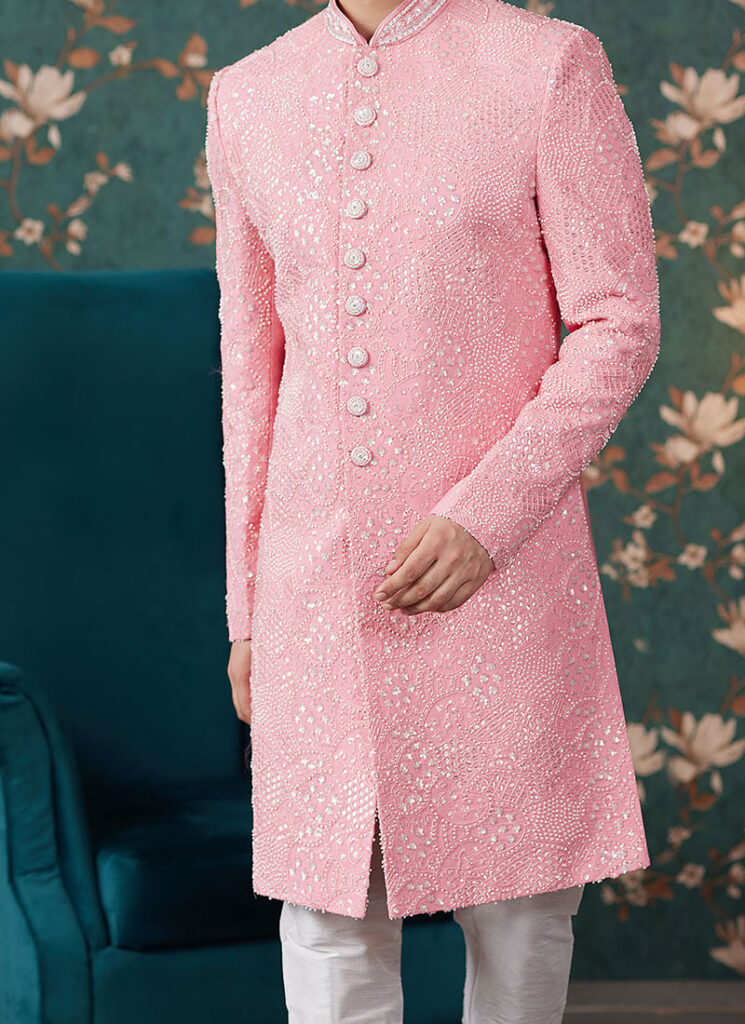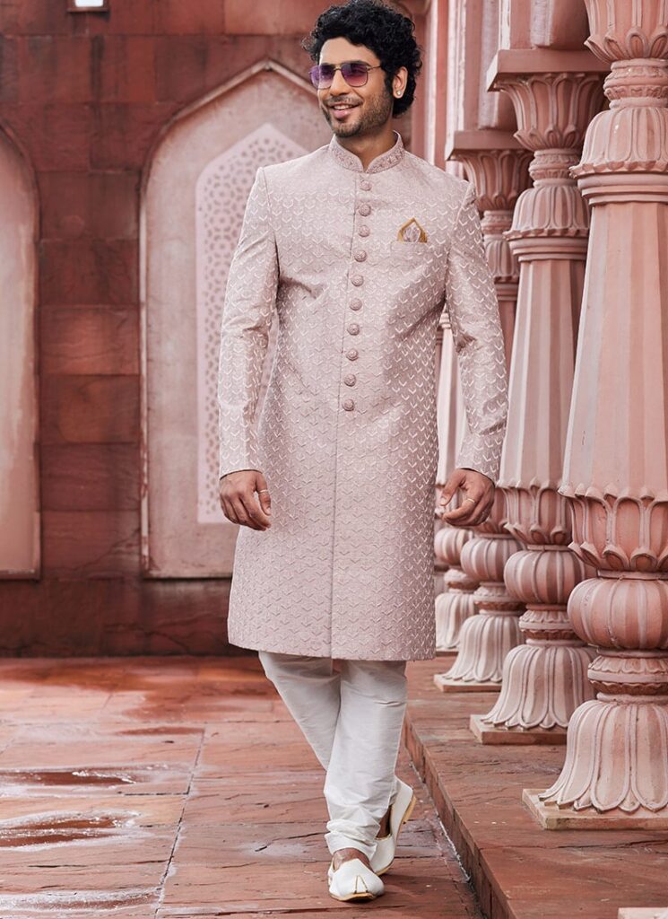 Light Pink Art Silk Indowestern Sherwani for Men – Wedding & Festive Wear