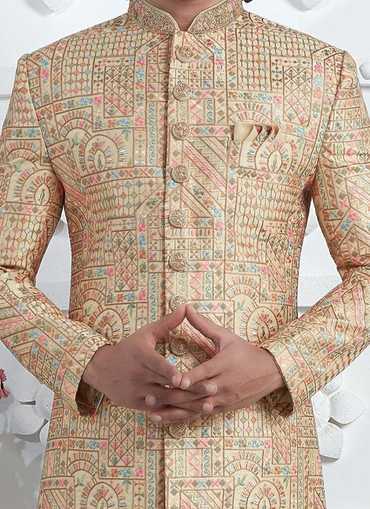Gold Art Silk Indian Sherwani for Men | Wedding & Festive Wear