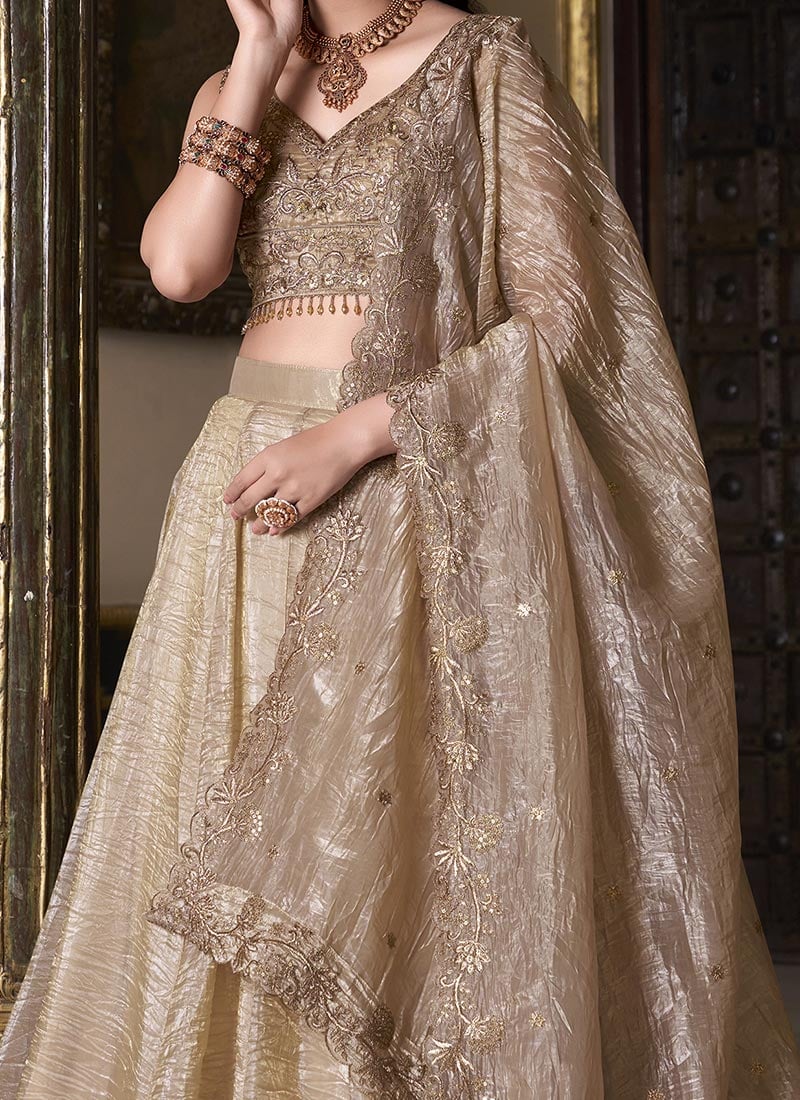 Beige Crush Silk Umbrella Lehenga Choli with Zari & Sequin Work