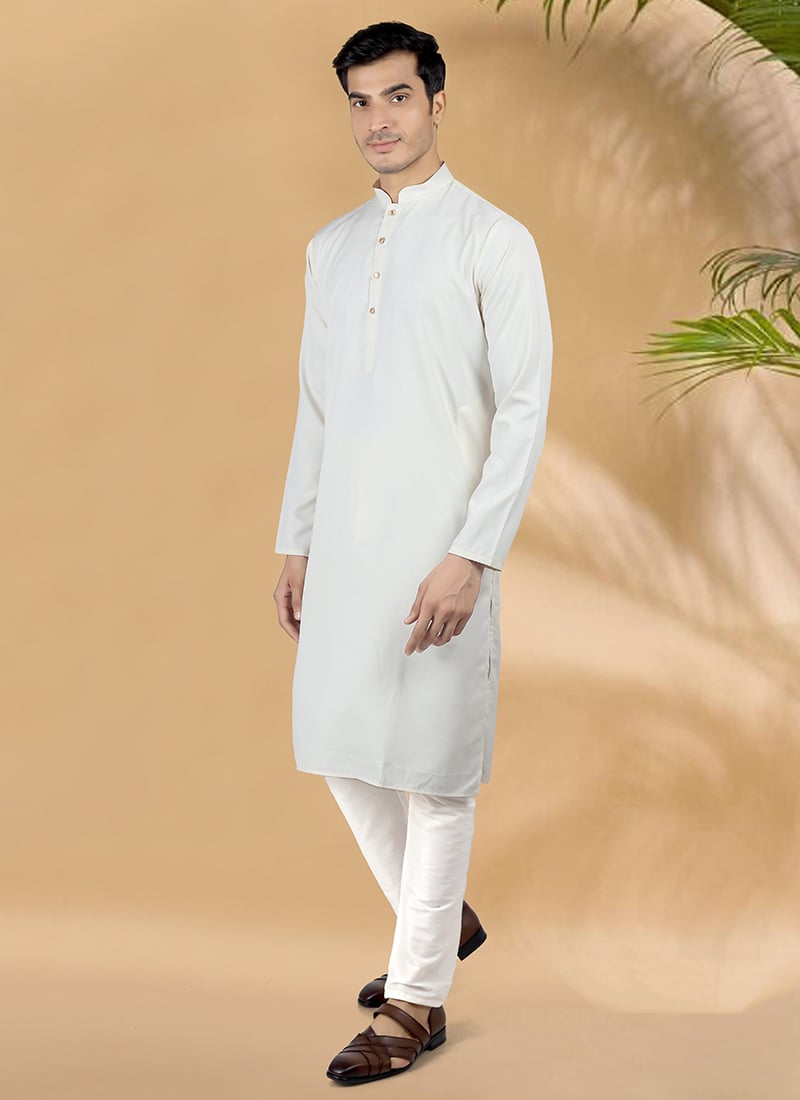 Men’s White Art Silk Kurta Pyjama – Traditional & Party Wear