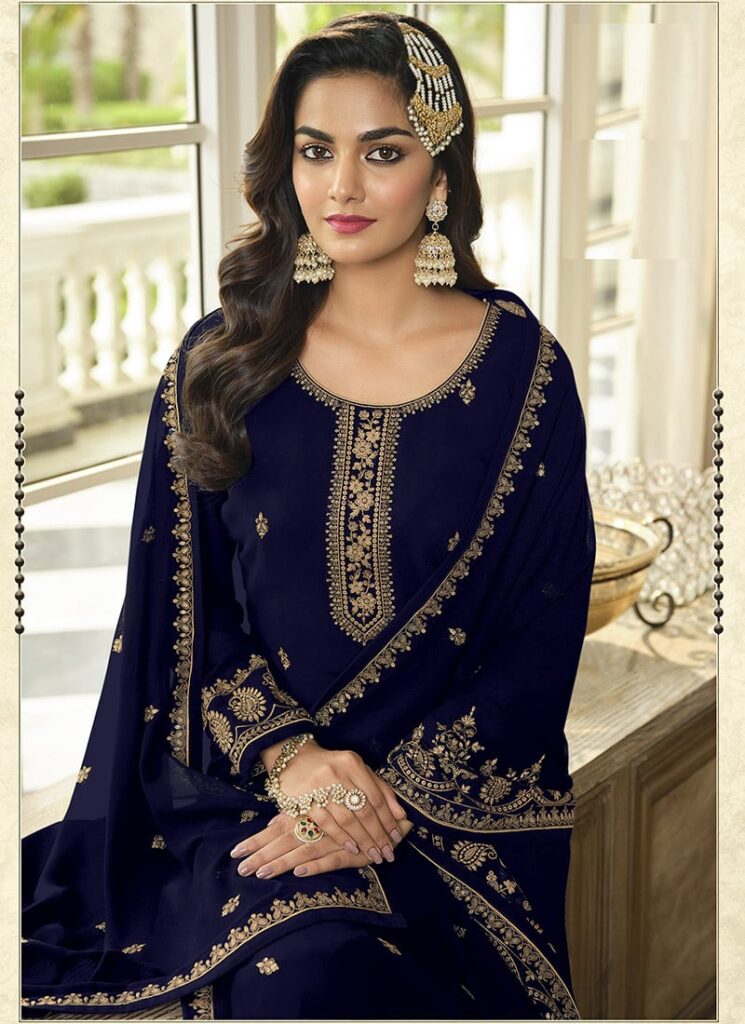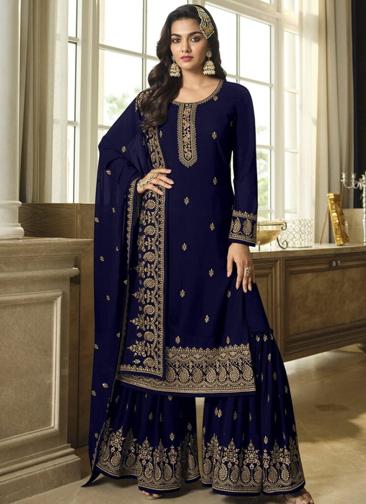 Blue Georgette Sharara Suit with Embroidery – Party & Wedding Wear