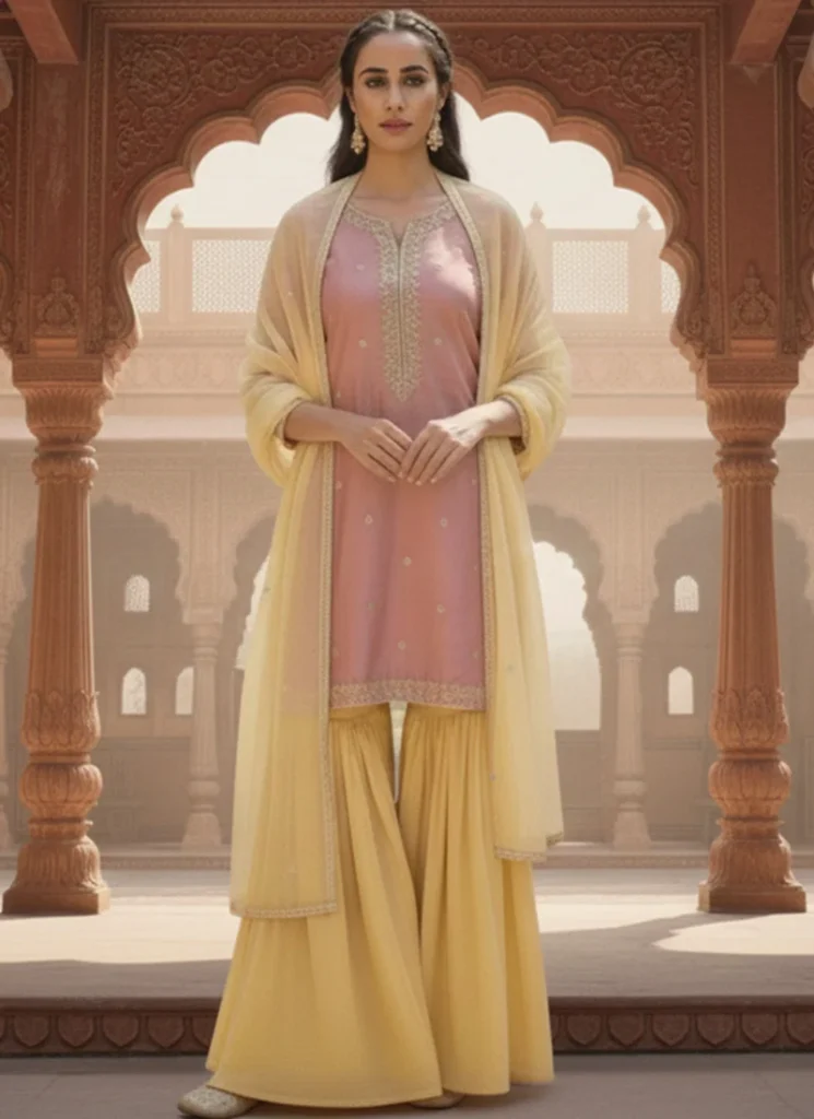 Pink Georgette Zari Sequins Sharara Suit